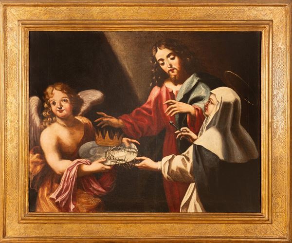 Santa Caterina da Siena riceve da un angelo e alla presenza del Cristo i simboli della sua passione
