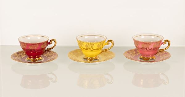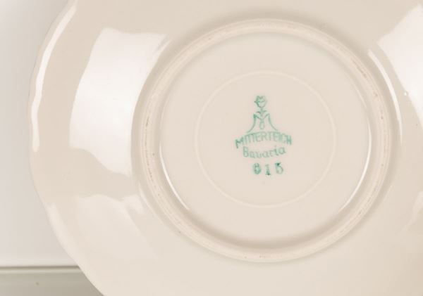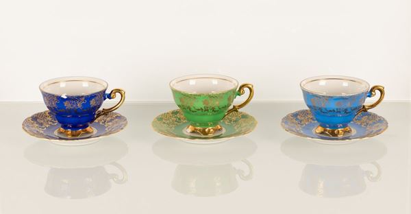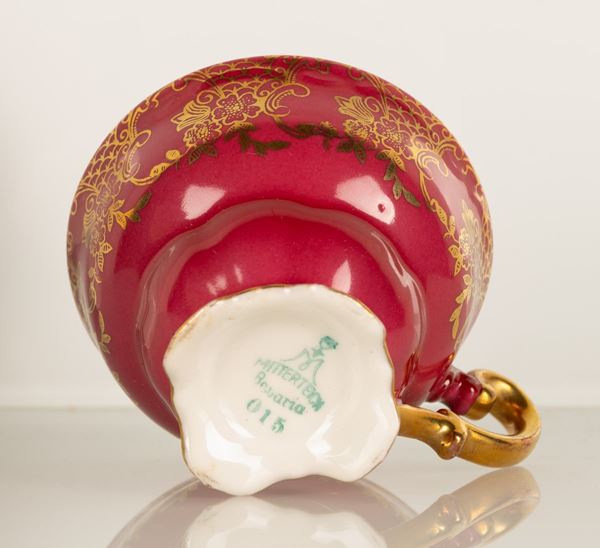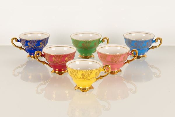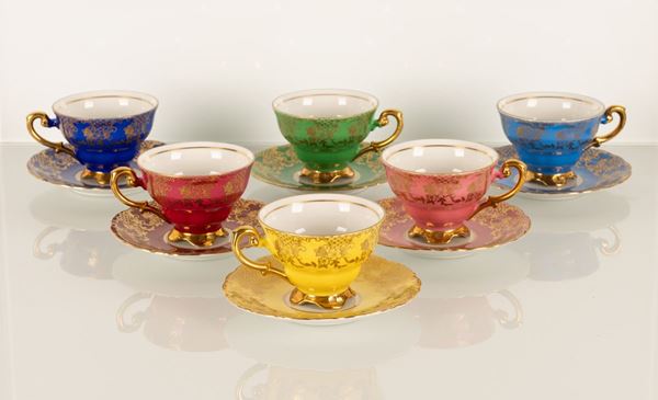 Set da caffè composto da 6 tazzine e 6 piattini in porcellana policroma e oro. Mitterteich Bavaria.