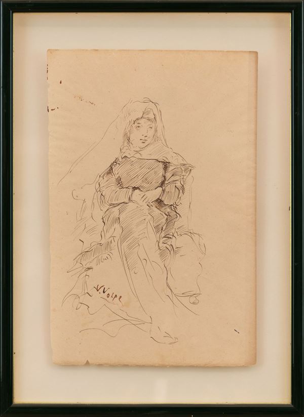 cm 30,5x20,5; con cornice a giorno cm 42x30Firmato in basso a sinistra " V.Volpe" in inchiostro bruno