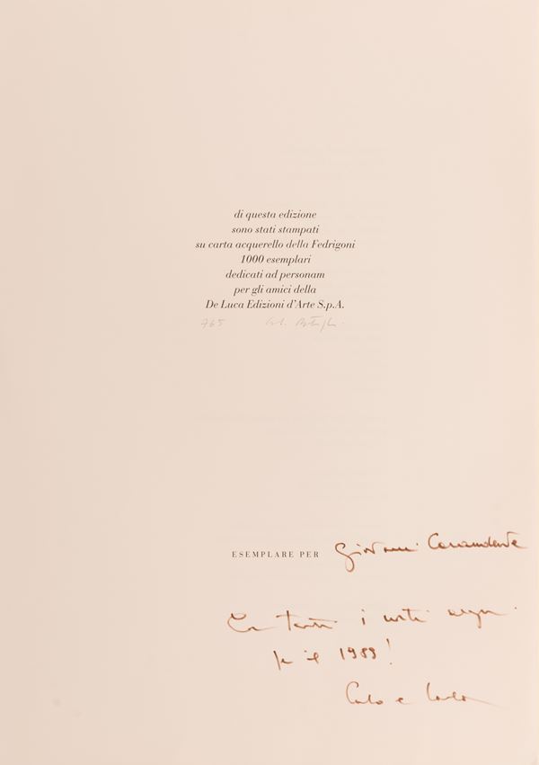 In basso a destra "esemplare per Giovanni Carnandente con tutti i nostri auguri per il 1989! Carlo e Lola"