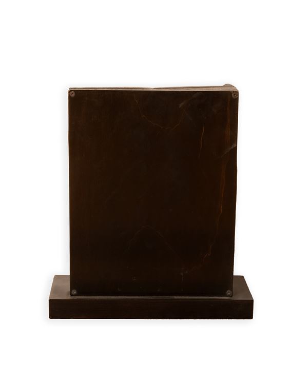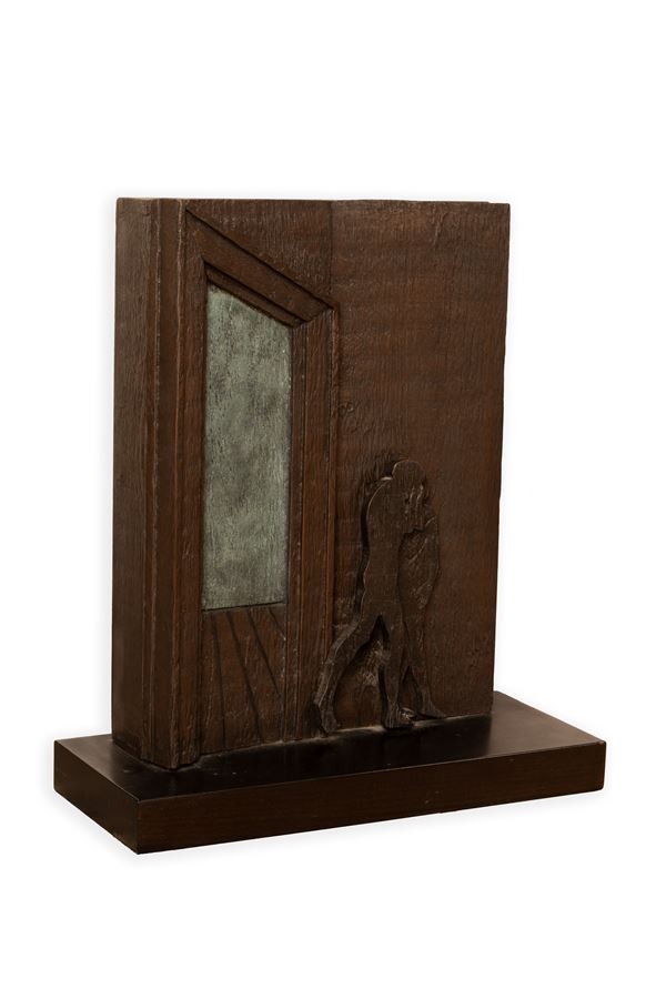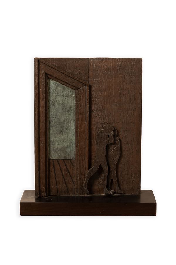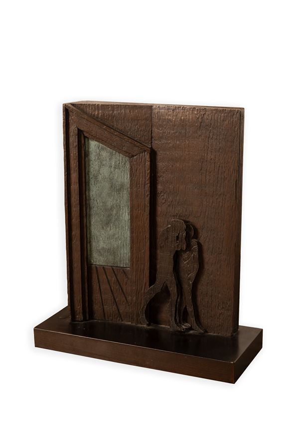 La scultura è relizzata "a cera persa" in refrattario ceramico della Fonderia Venturi Arte. Il bassorilievo è patinato a mano con due figure fuse a parte e applicate.