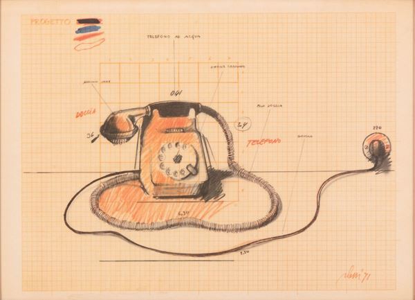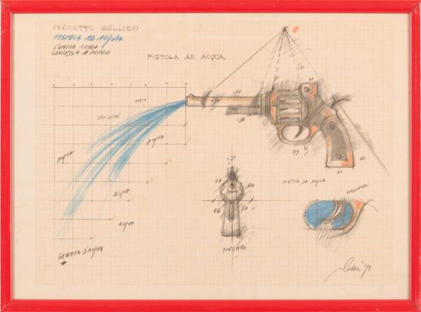 Lotto di due disegni. Progetto bellico - Pistola ad acqua e Telefono ad acqua