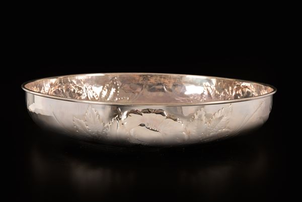 Centrotavola in argento 800/000 con decoro a papaveri. Punzone 576FI