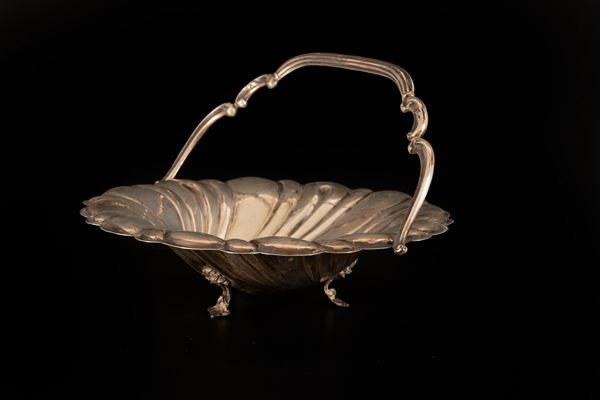 Cestino con manico e tre piedini in argento
