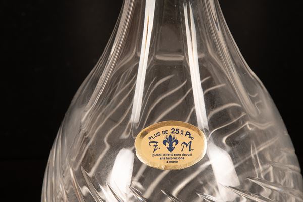 Coppia di bottiglie in cristallo con tappi e collo in argento 925/000. Punzone 665FI