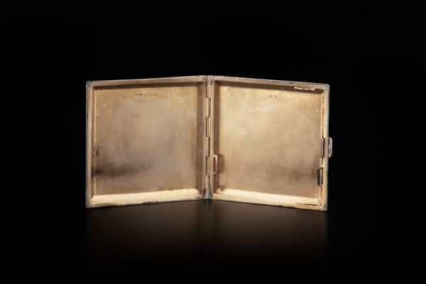 Elegante portasigarette in argento Birmingham con piatti zigrinati.