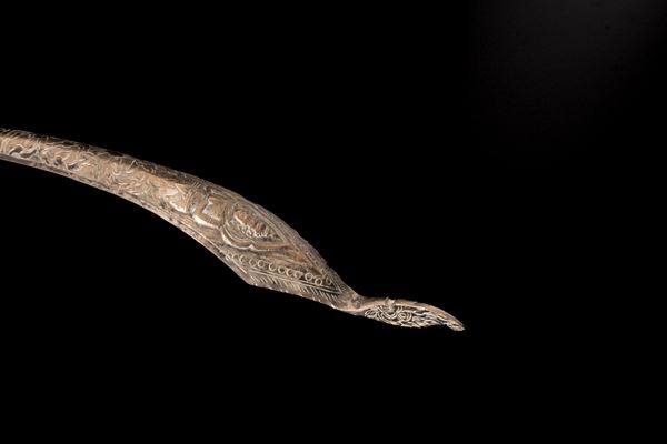 Grande cucchiaio thailandese in metallo argentato con manico finemente lavorato