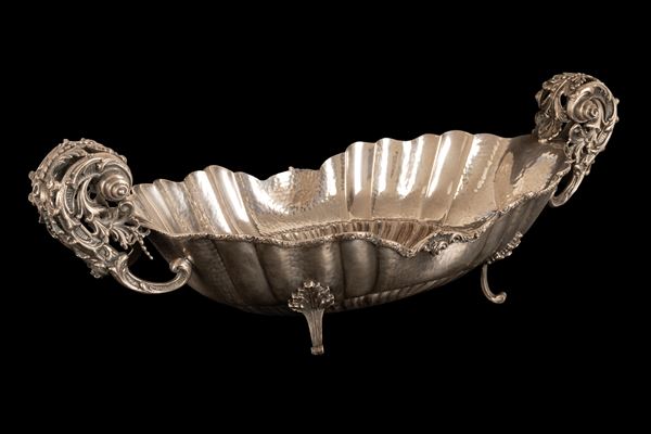 Magnifica Jatte in argento 800/000 con particolare cesellatura a ricche volute ai manici