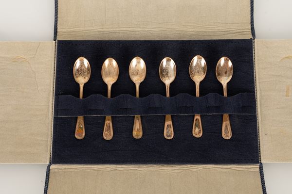 Sei cucchiaini da caffè in argento 800/000 in custodia di tessuto