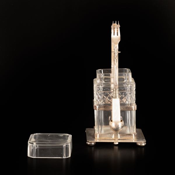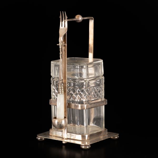 Set per sottaceto in vetro e silver omposto a corpo centrale composto da struttura centrale in E.P.N.S. (ElectroPlacted Nickel Silver) stante [..]