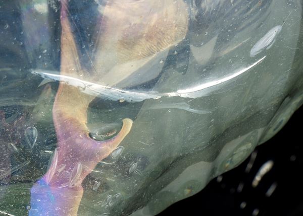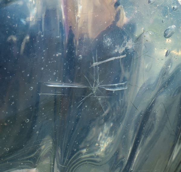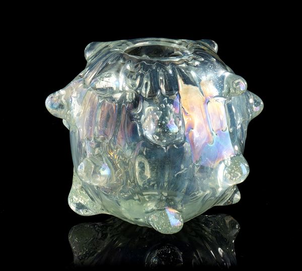 Vaso Mina a Mugnoni in vetro trasparente iridato corpo sferico con bocca circolare a filo