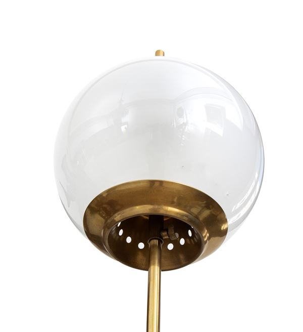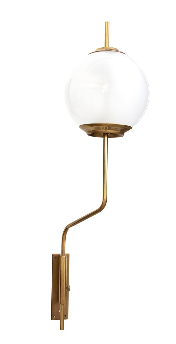 Coppia di applique da parete Pallone Lp1 con struttura in ottone cromato e diffusori in vetro opalino