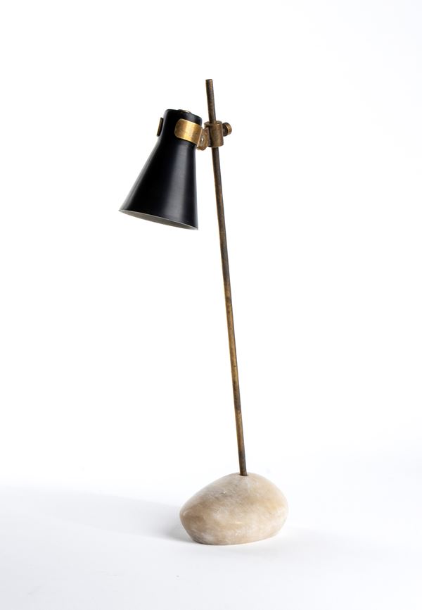 Sasso di fiume levigato, ottone e metallo verniciatoDimensioni: