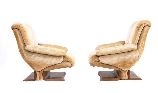 Coppia di poltrone Europoltrona con struttura in legno e rivestimento in tessuto