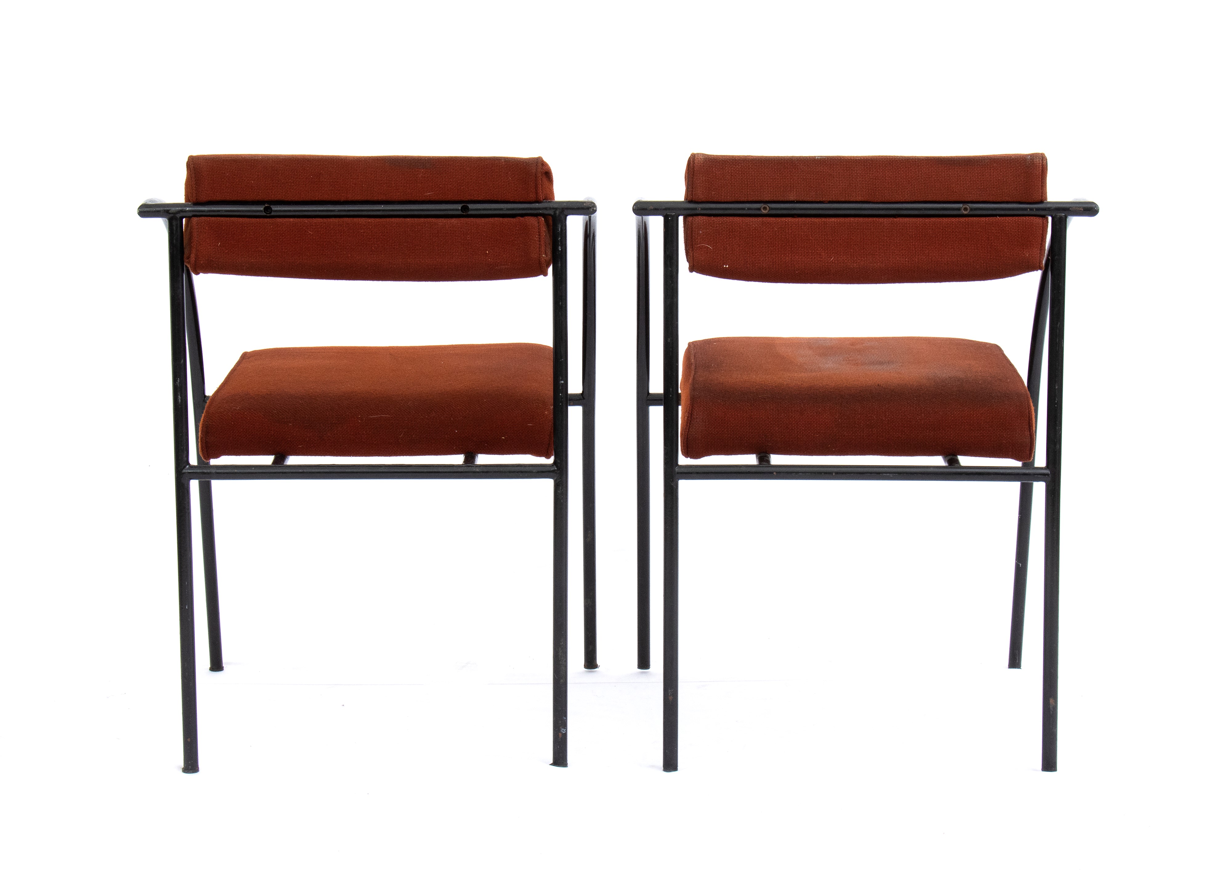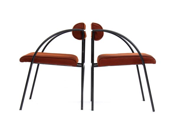 Coppia di Sedie Vienna con struttura in metallo a sezione tonda e braccioli dal profilo curvo