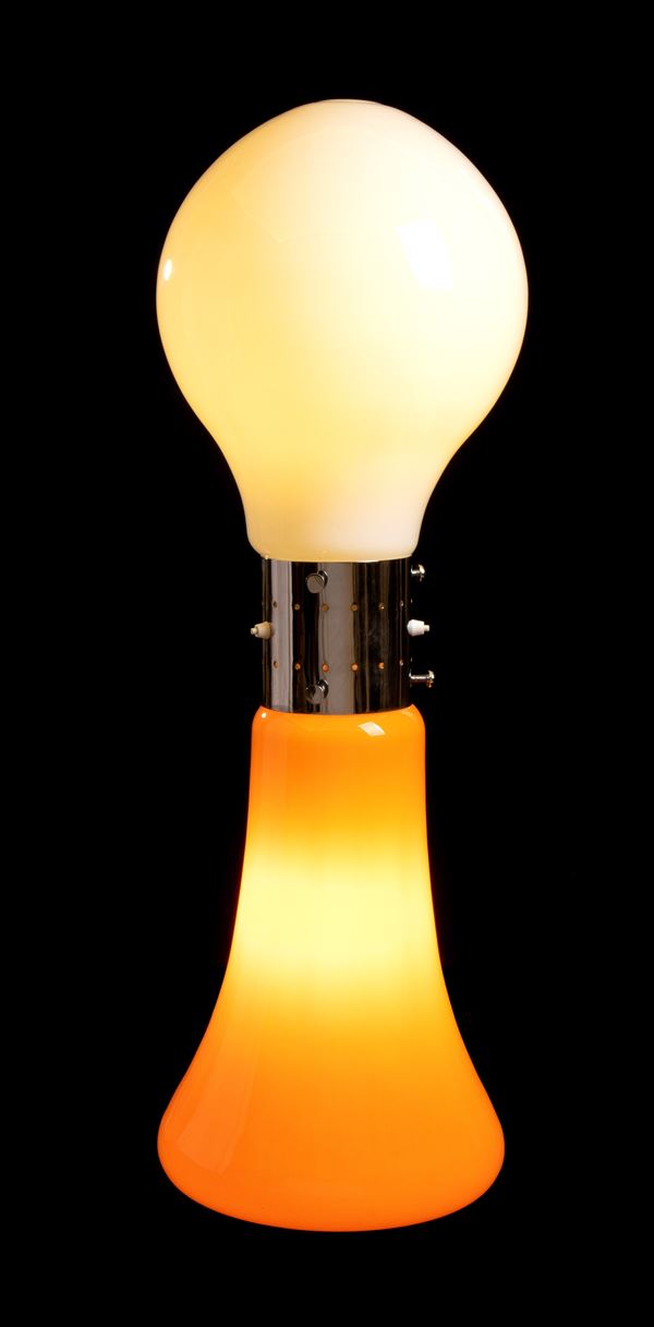 Lampada da terra Birillo composta da vetri soffiati di Murano e cilindro cromato