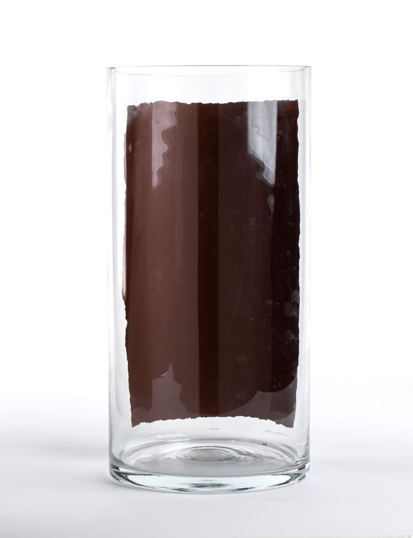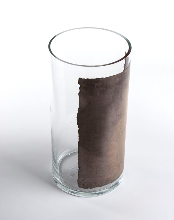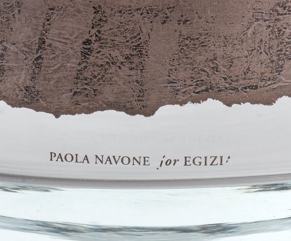 Vaso vetro soffiato a bocca e serigrafato a mano vetro e argento