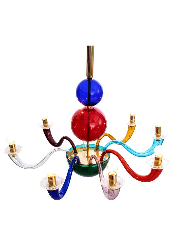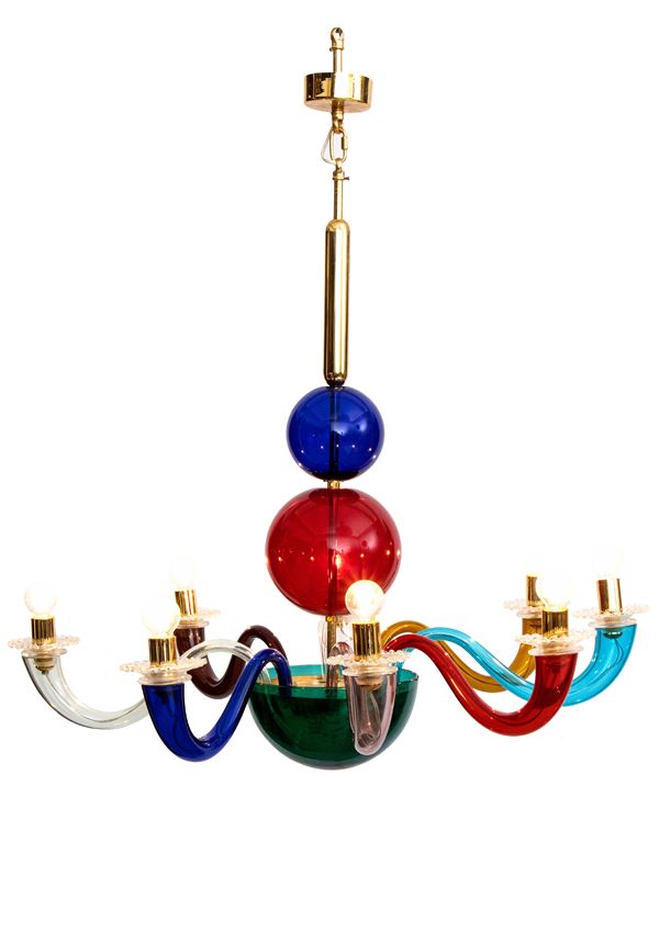 Lampadario Venini a 8 bracci in vetro di Murano soffiato a mano