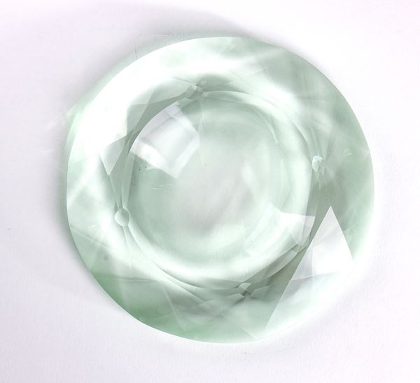 Posacenere in vetro verde Nilo attribuito a produzione Fontana Arte anni Sessanta