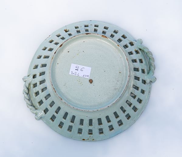Cestino traforato con manici a tortiglione. Manifattura Castelli, XIX secolo