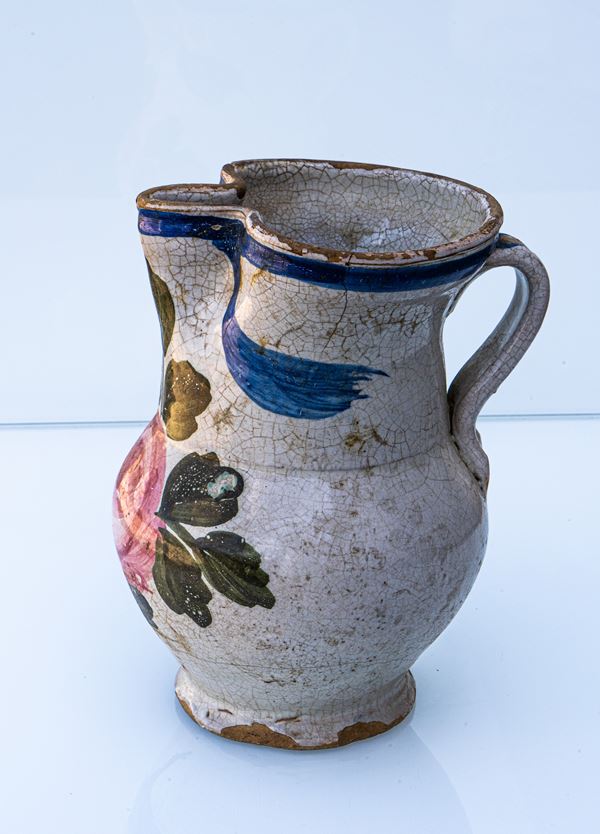 Brocca monoansata con decoro floreale. Manifattura Palena (Pulsinelli?)