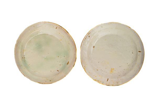 Coppia di piatti con decoro di città e viandanti