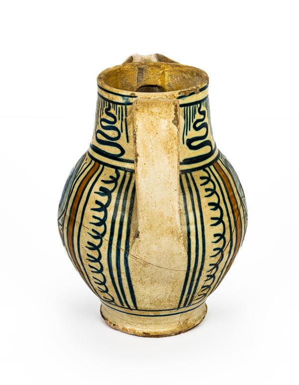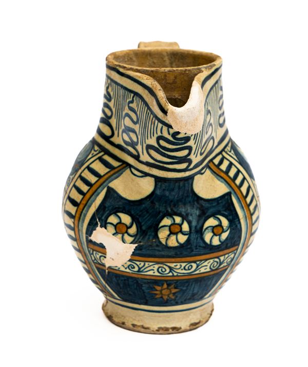 cm 18x16,5; diametro base cm 7Piede a disco a margini arrotondati, collo alto e cilindrico con orlo assottigliato e sporgente.