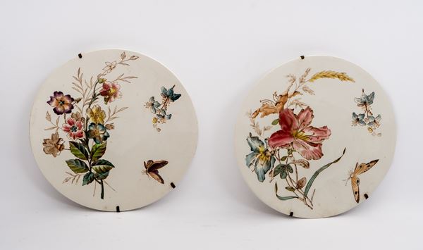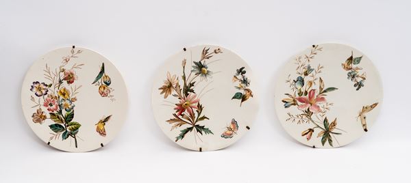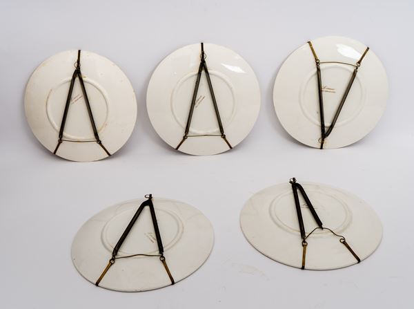 Servizio di cinque piattini con decoro a fiori e farfalle della Società Ceramica Richard.