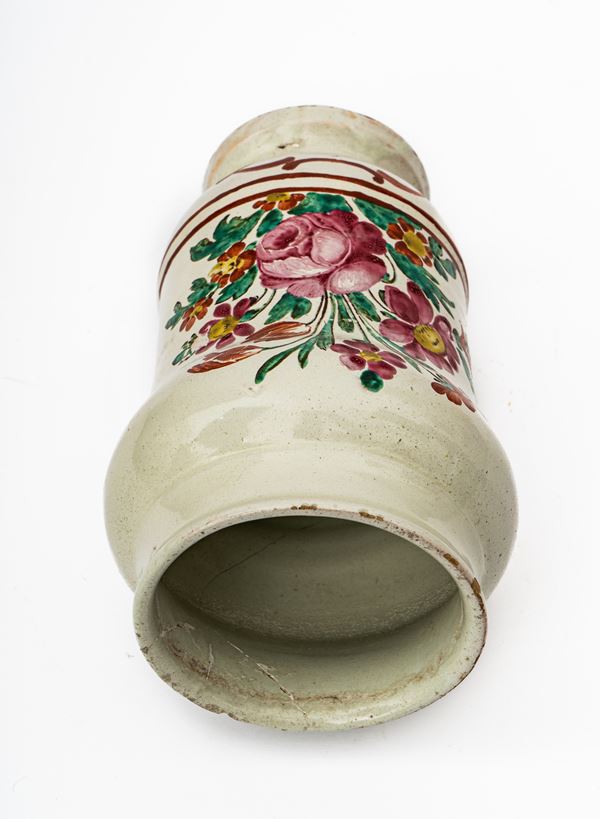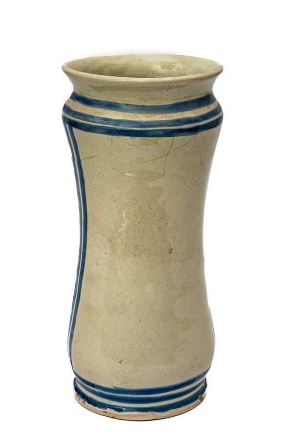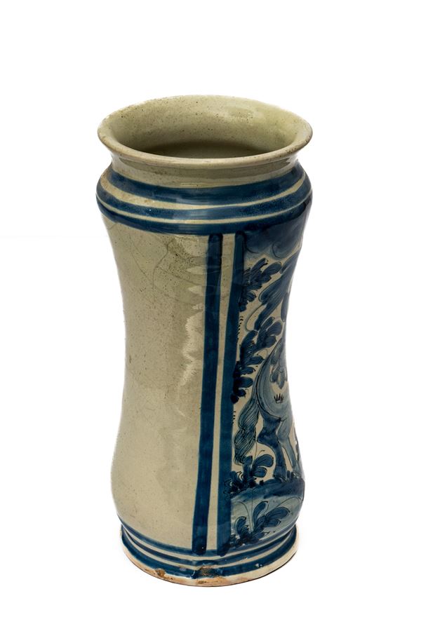 Albarello da farmacia raffigurante “San Giorgio e il drago”. Maiolica di Savona