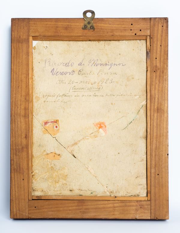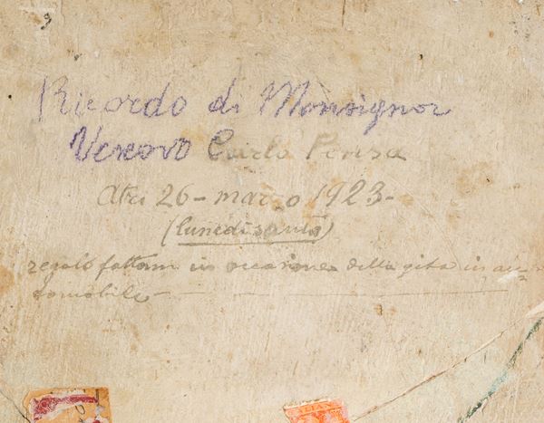 Al retro iscrizione "ricordo di Monsignor Vescovo Carlo Pensa, Atri 26 marzo 1923 (lunedì santo) regalo fattomi in occasione della gita in automobile."