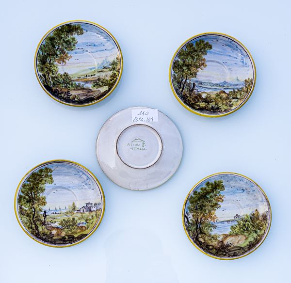 Cinque piattini con paesaggo agreste.