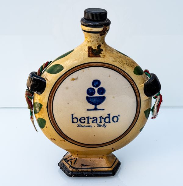Fiasca da pellegrino con reclame "Berardo Pescara" e al retro ritratto di Gabriele D'Annunzio
