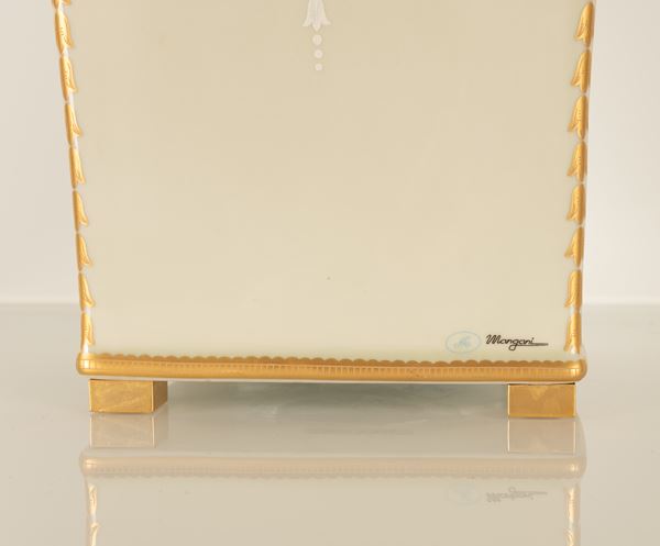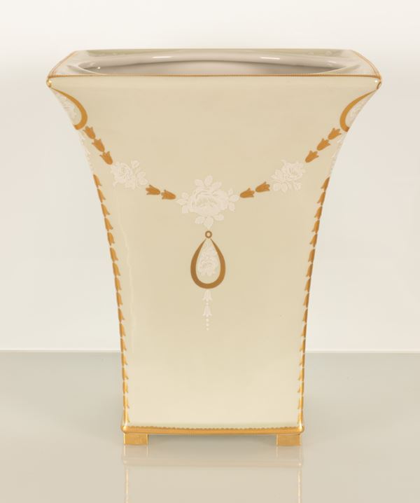 Grande vaso con decorazioni festonate oro. Porcellana Mangani.