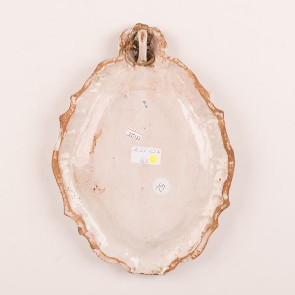 Targa devozionale con San Francesco di Paola in maiolica policroma. Probabilmente bottega di Silvio De Martinis o Gesualdo Fuina