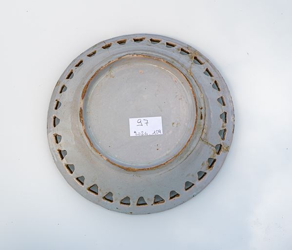 Cestino traforato con decoro centrale blu. Manifattura Castelli, XIX secolo