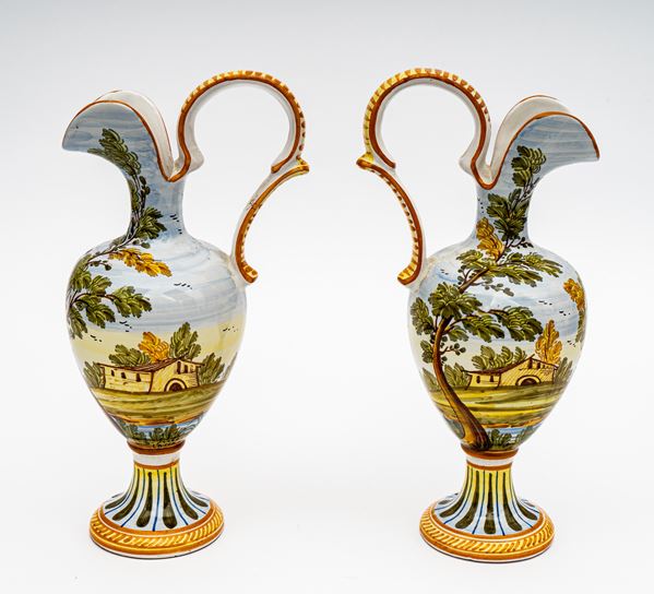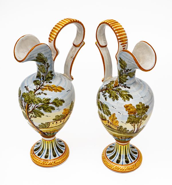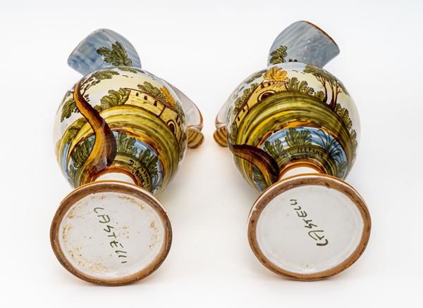 Coppia di anfore versatoi con decoro a paesaggio