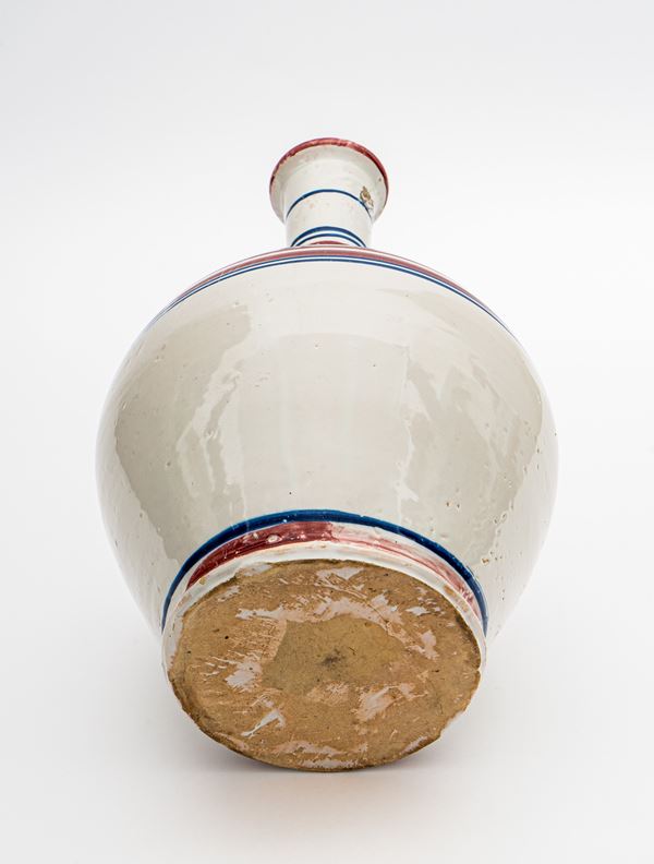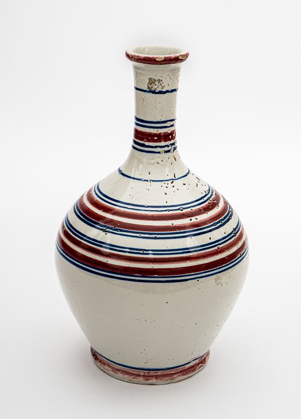 Bottiglia con decoro a cerchi rossi e blu concentrici