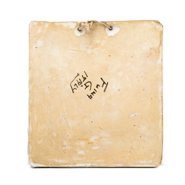 Placca in maiolica decorata a rilievo policromo raffigurnte il detto: " A lo parlare agi mesura"