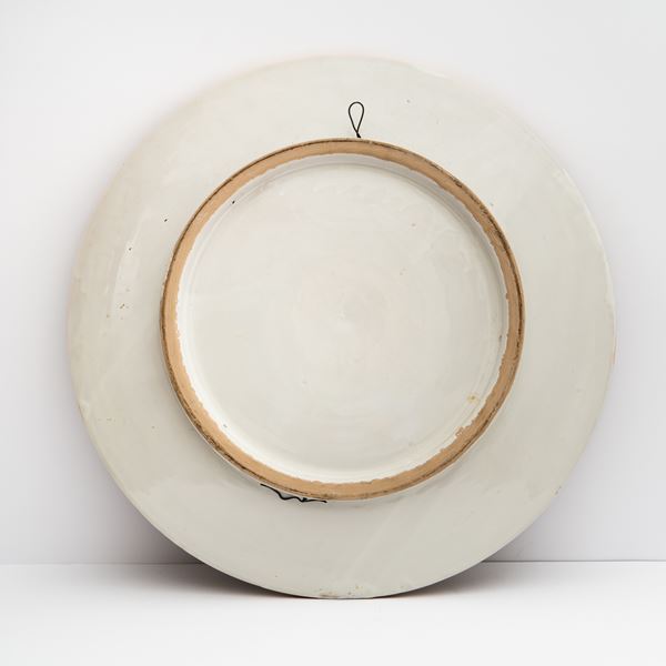 Grande piatto realizzato da Giovanni d'Angelo con pastorella, gregge e cane pastore