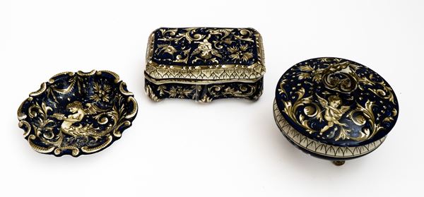 Set da toelette composto da portacipria , svuotatasche e portagioie nei toni del blu