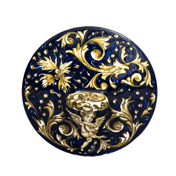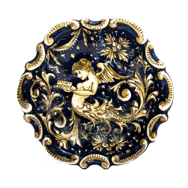 Portacipria: cm 16x16 Decoro a girali fogliati e putto che suona la cetra