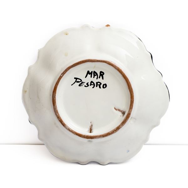 Svuotatasche: cm 3,2x17 Bordo mistilineo e figura di arpia che legge un libro nel cavetto