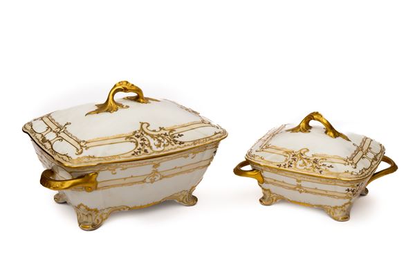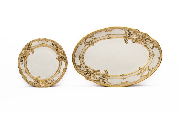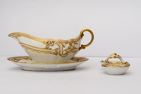 Servizio da pranzo mistilineo da sei con finitura a rilievo in oro della Pirker & Hammer