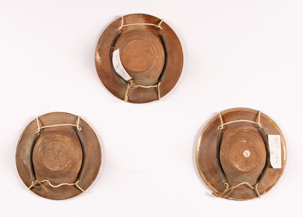 Ø cm 12,5; Ø cm 13; Ø cm 13La superficie interna è rivestita con ingobbio e vetrina, mentre l'esterno è nudo.