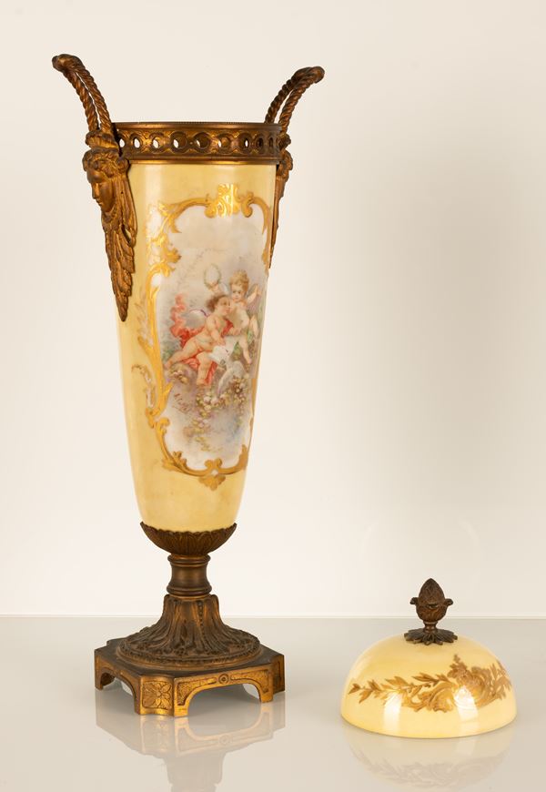 Vaso di porcellana in stile Sevres del XVIII secolo. (riproduzione tarda della fine del XIX secolo)