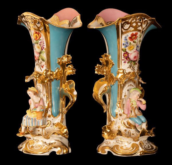 Coppie di vasi in porcellana di gusto neo-settecentesco