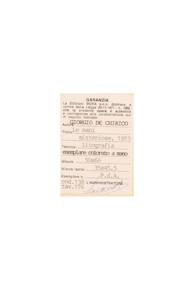 GIORGIO DE CHIRICO, Catalogo dell’opera grafica 1969 - 1977 - Edizioni Bora alla tav. 176