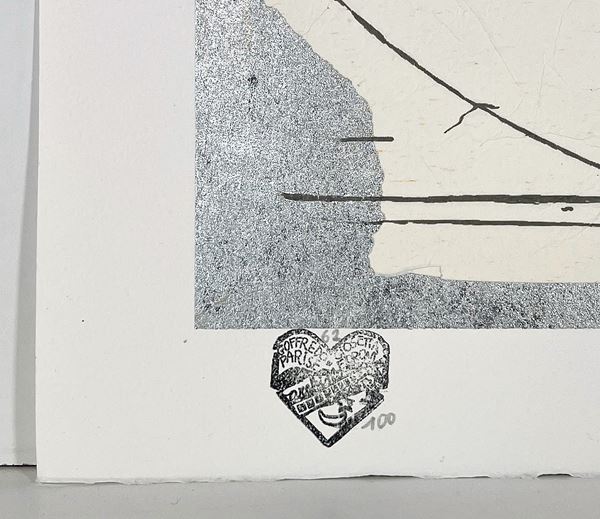 Opera su carta Pescia in cotone da 350 grammi, formato 50×50 realizzata in 125 esemplari per tutto il mondo, dei quali 100 numerati da 1/100 a 100/100 in numeri arabi, 25 numerati da I/XXV a XXV/XXV in numeri romani e alcune P.A. per l’artista.