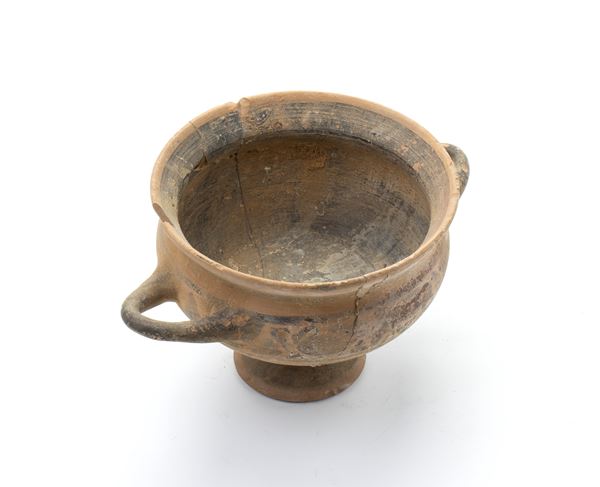 Coppa biansata in ceramica arcaica a figure nere con decoro zoomorfo