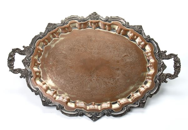 Grande vassoio cesellato WSB EPC 146 con 4 piedini Electro Plated Copper